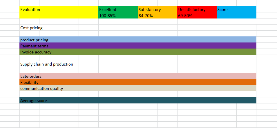 - Customer: Order fulfillment rates, product quality ratings.